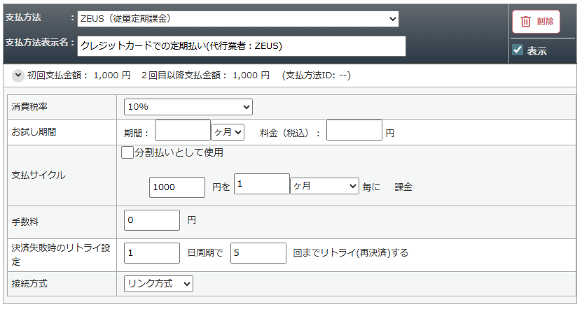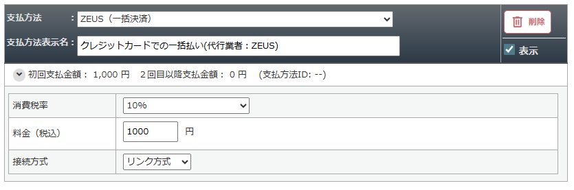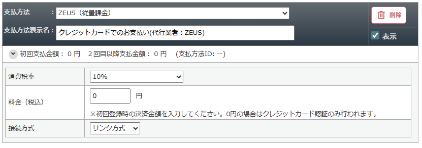 にて、「支払方法」に「ZEUS決済」を選択できるようになります。