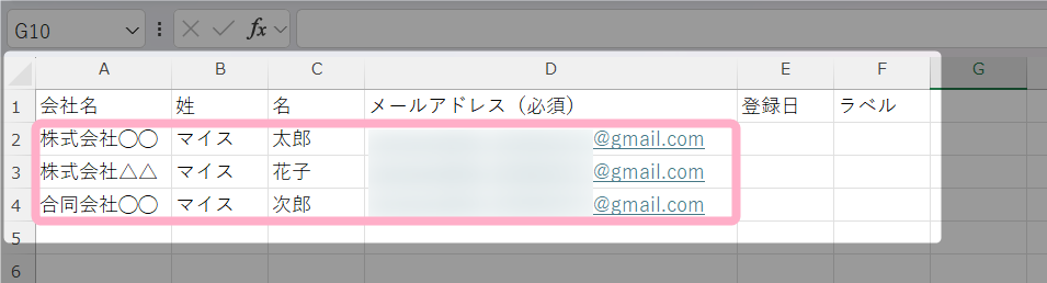 2.ダウンロードした入力シートに登録したいユーザーの情報を適宜入力します。