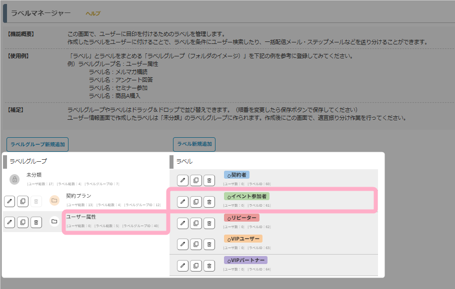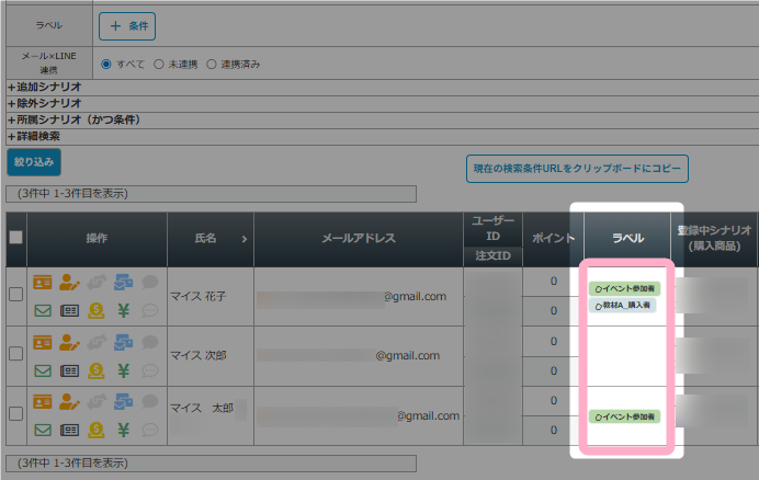 このようにCSV一括登録を行うことで、CSV一括登録でユーザーを登録する際にラベルを付与することができます。