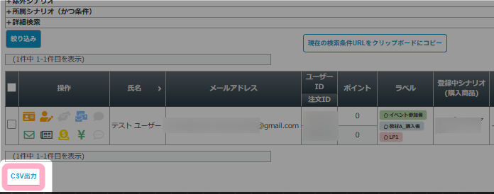 2.ページ最下部の「CSV出力」をクリックしてユーザー情報を出力します。