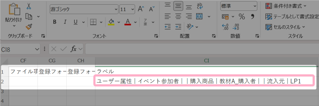 3.CSVファイルの右側にある「ラベル欄」の値をコピーして利用してください。