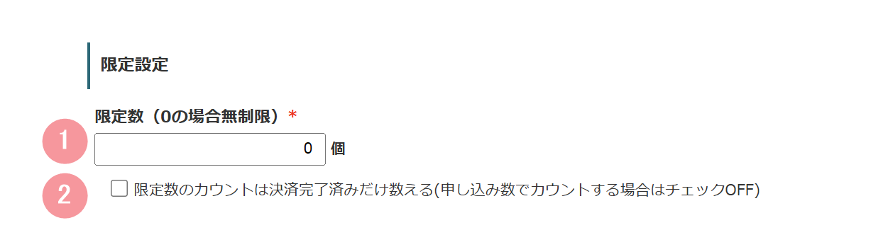 | 1 | 限定数(0の場合無制限) |  対象シナリオの登録者数を制限することができます。 初期状態では、無制限(0個)が指定されています。 設定した限定数を超えると、登録時に下記画面が表示され、登録ができなくなります。 ![]()  |