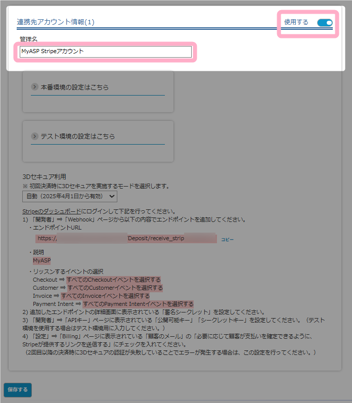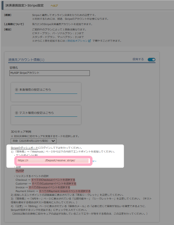 ここではMyASPとStripeを連携し決済導入するまでの設定方法を説明します。