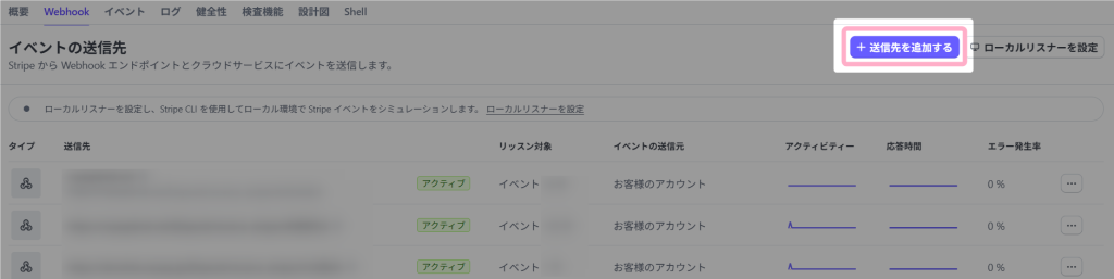 10.イベントの送信先画面にて、「+送信先を追加する」をクリックします。