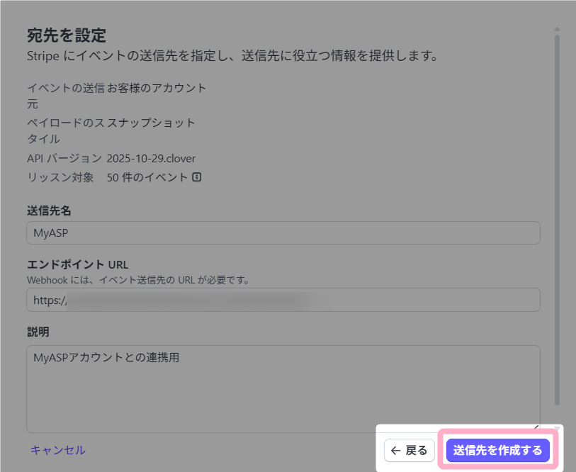 | エンドポイント URL | MyASP管理画面に表示されているエンドポイントURLを入力する。![]() |