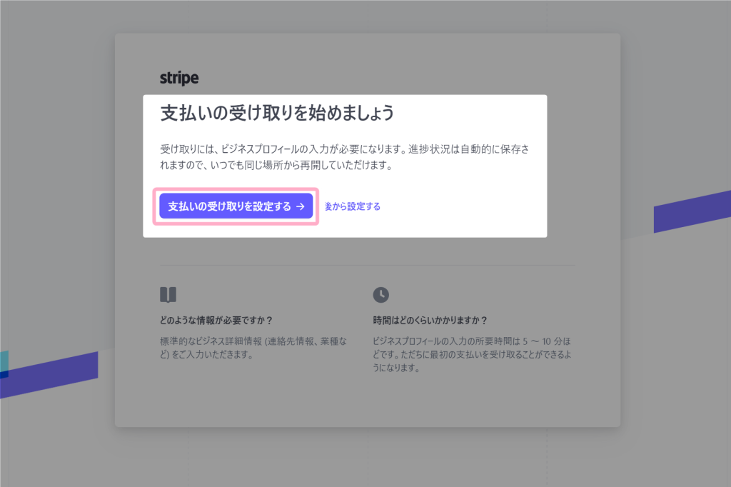 Stripe決済を利用するためには、別途、Stripeとの契約が必要になります。