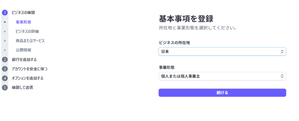 Stripe決済を利用するには、事前にStripeアカウントを作成しておく必要があります。