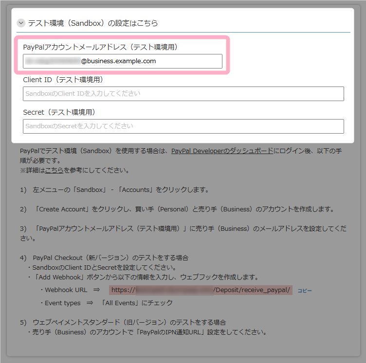 PayPalのSandboxアカウントを利用して、事前に決済のテストをすることができます。