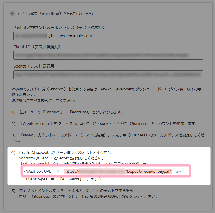 参考:PayPal決済(PayPal Checkout)の導入~販売設定の流れ