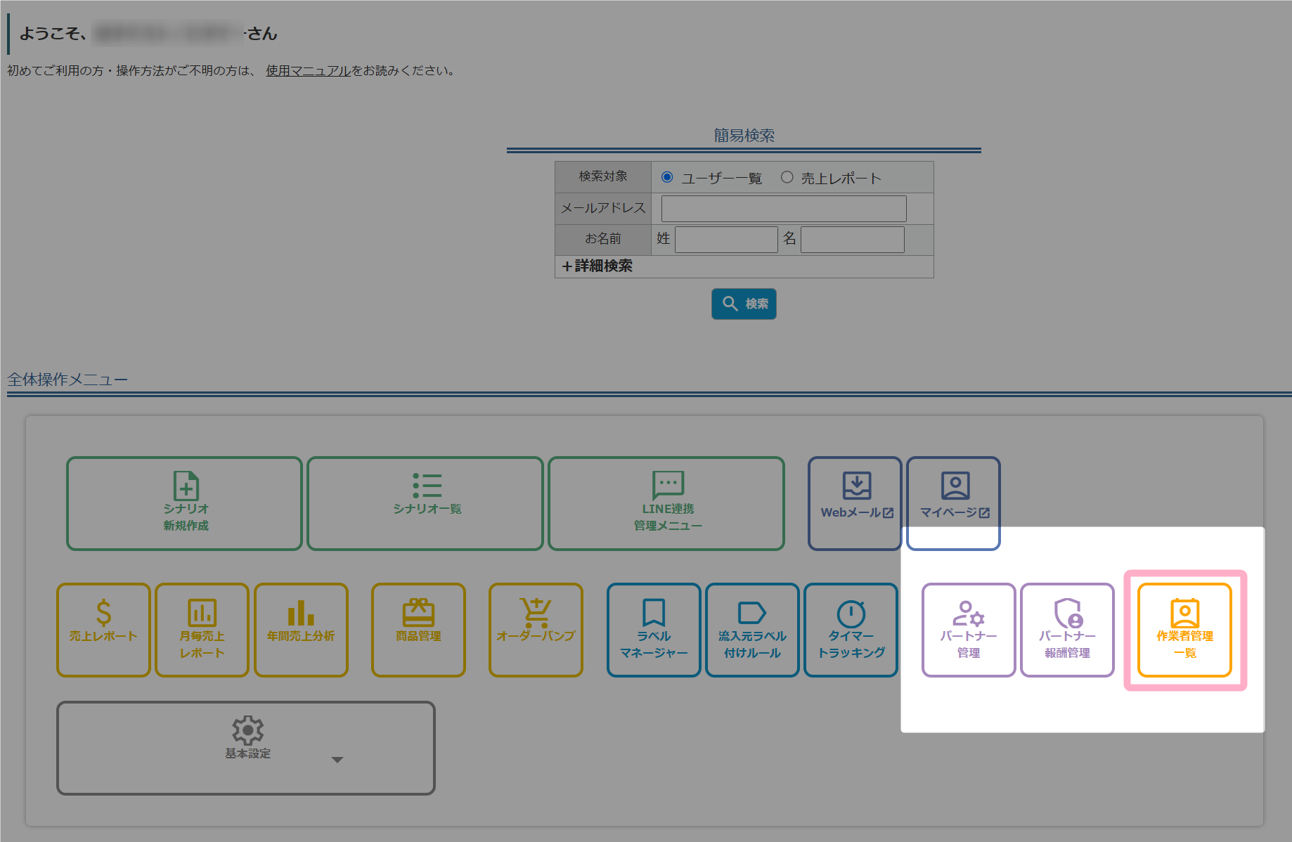 | 5 | 作業者名 | 該当の作業者アカウントの作業者名が表示されます。 |
