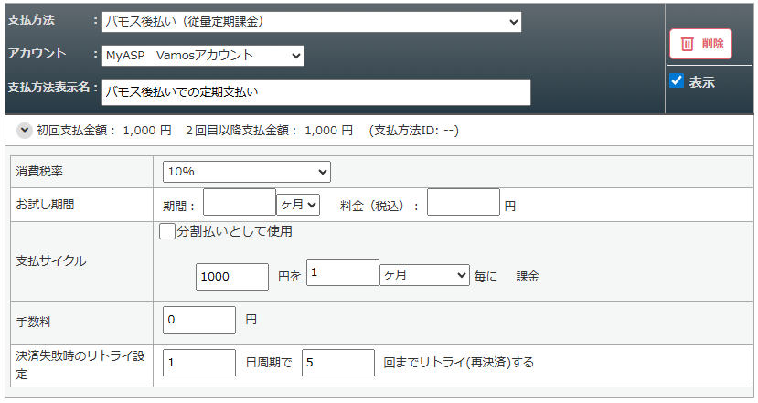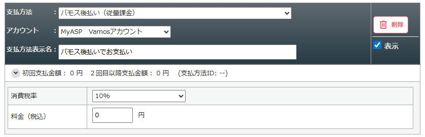 支払方法で「バモス後払い(従量定期課金)」を選択します。