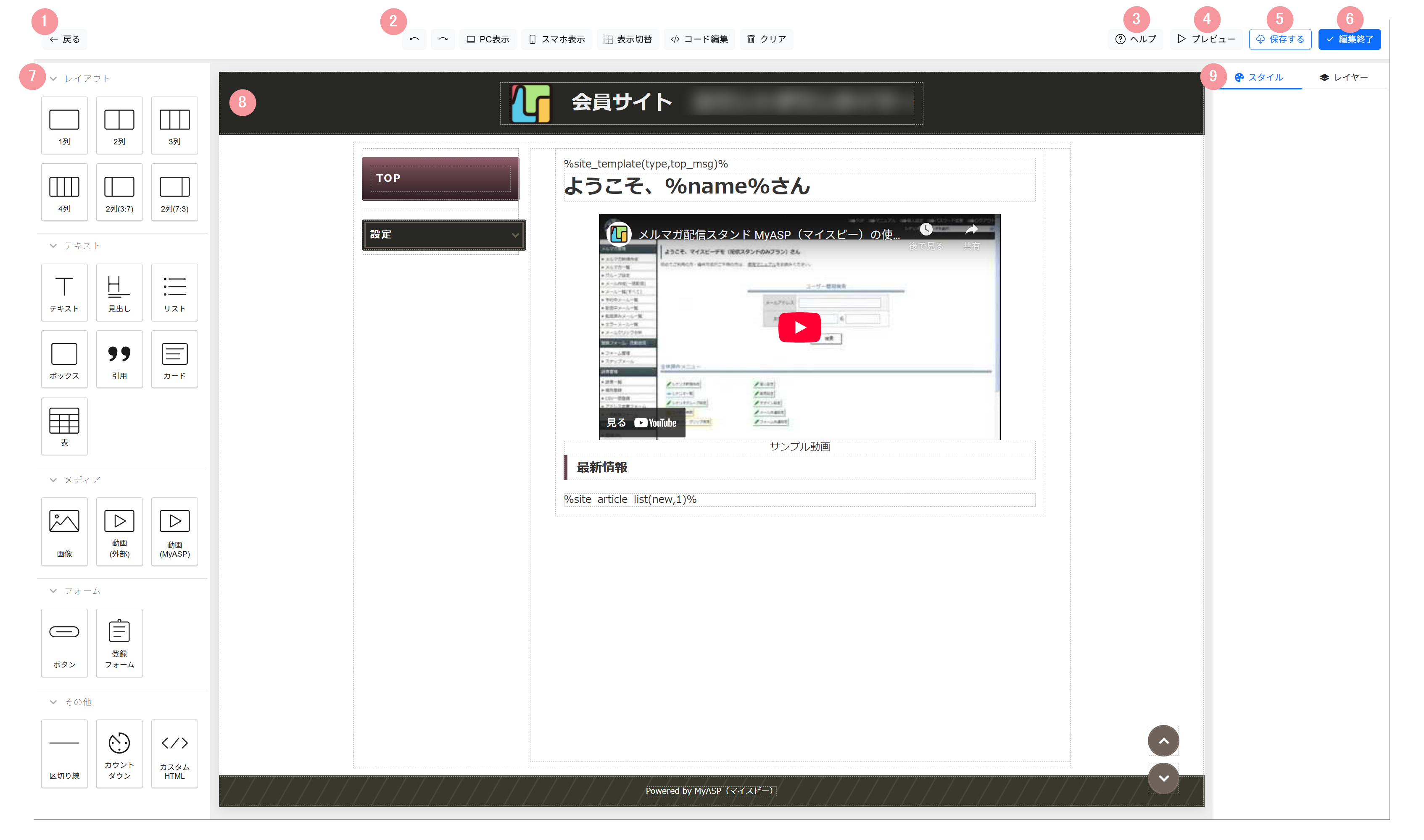 詳細は、会員サイトページ編集時の注意を参考にしてください。