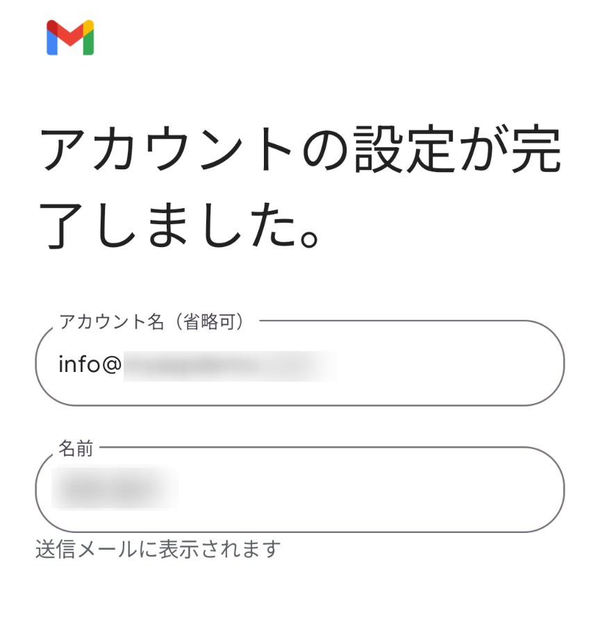 9.「アカウントの設定が完了しました」の画面が表示されば、設定は完了です。