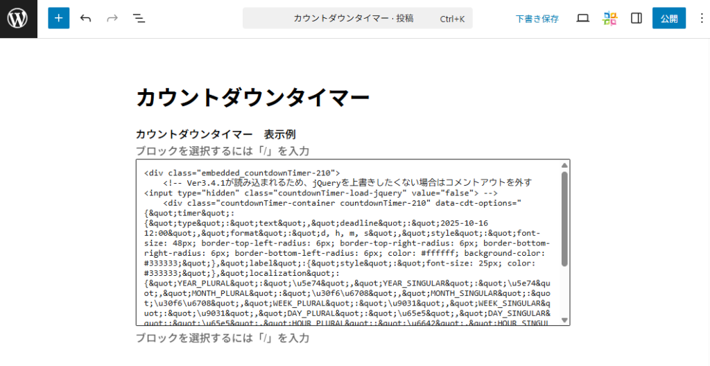 タグを設置したら外部ページを開き、カウントダウンタイマーが正しく表示・動作しているか確認してください。