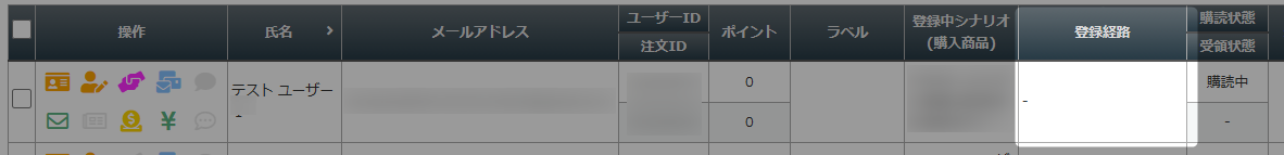 - 2025/12/09のシステムアップデートより以前に登録された場合や、システム側で登録経路の取得ができなかった場合は、登録経路欄は空欄(-)となります。