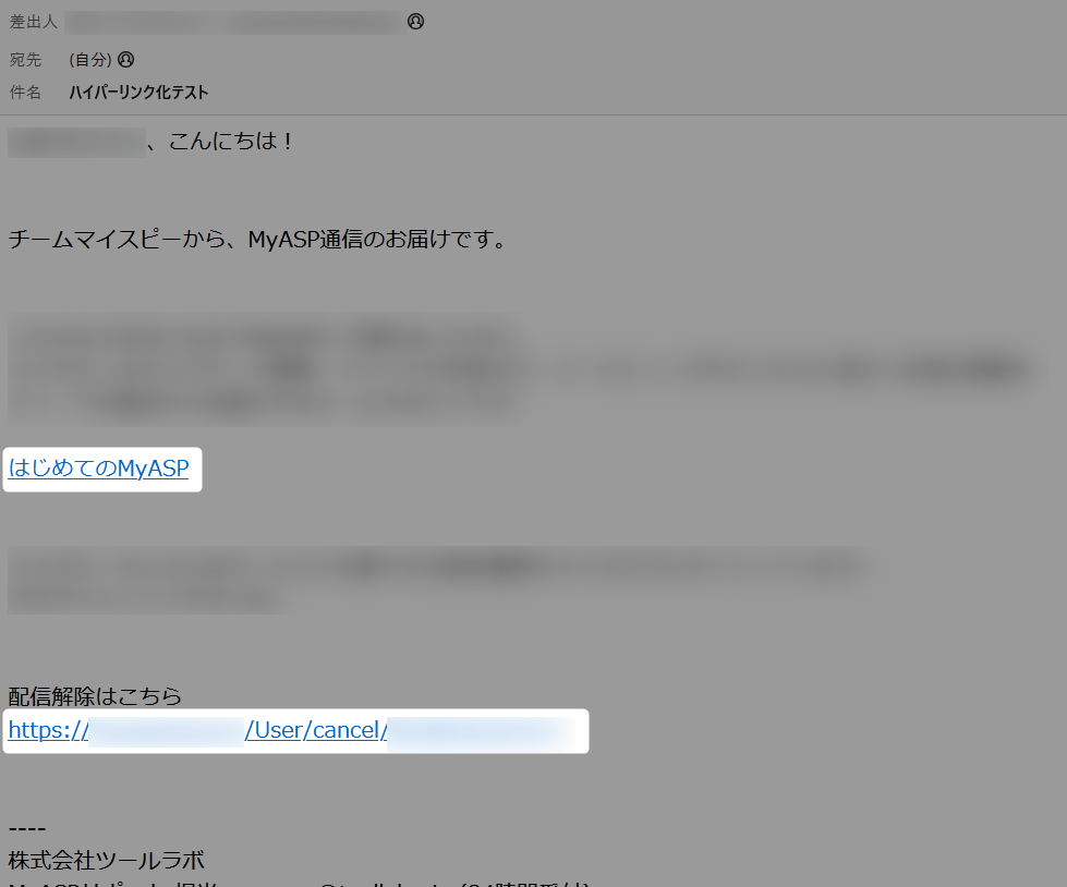 5.メール本文に記載したテキストがハイパーリンク化されていることを確認します。