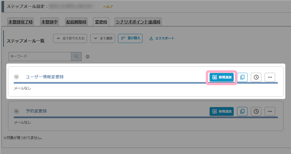 「変更時」タブで対象のステップメールを作成していない場合は、ユーザー宛てに通知メールは配信されません。