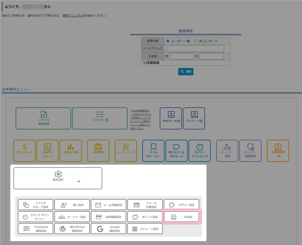 MyASPトップ画面 > 基本設定 > AI設定