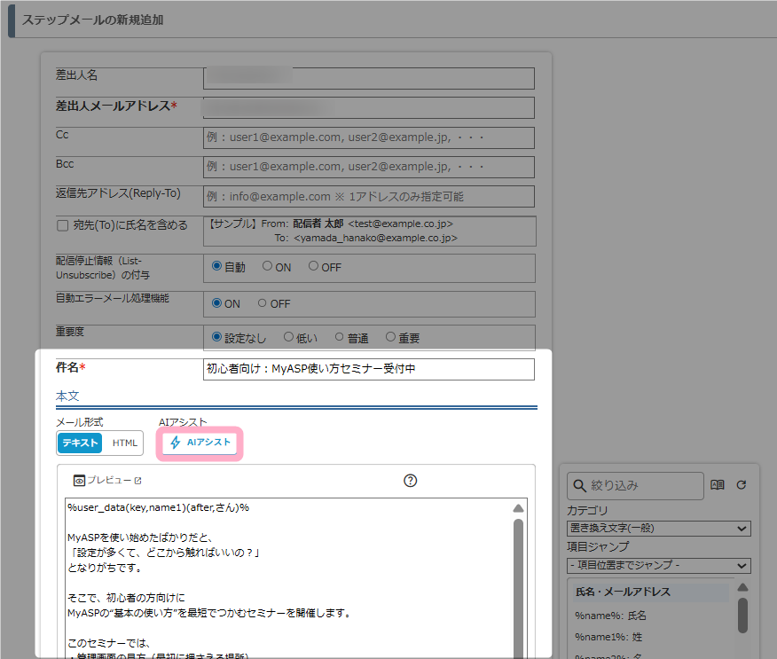MyASPから配信するメールについて、AIを利用してメールを作成・編集することはできますか?
