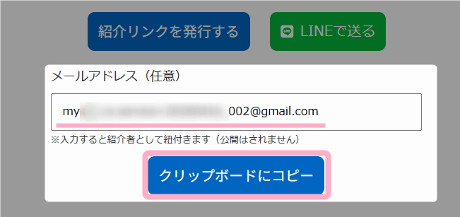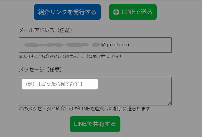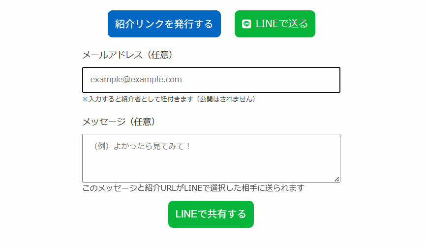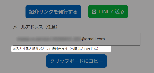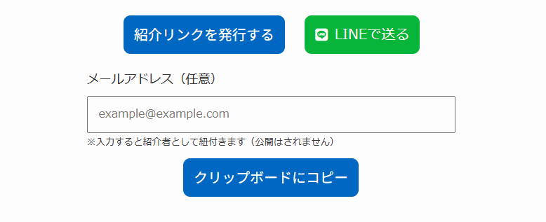 ※紹介報酬の支払いを前提とせず、紹介だけを促す導線として利用する場合は、メールアドレスを入力せずに紹介リンクを発行する運用のみでも問題ありません