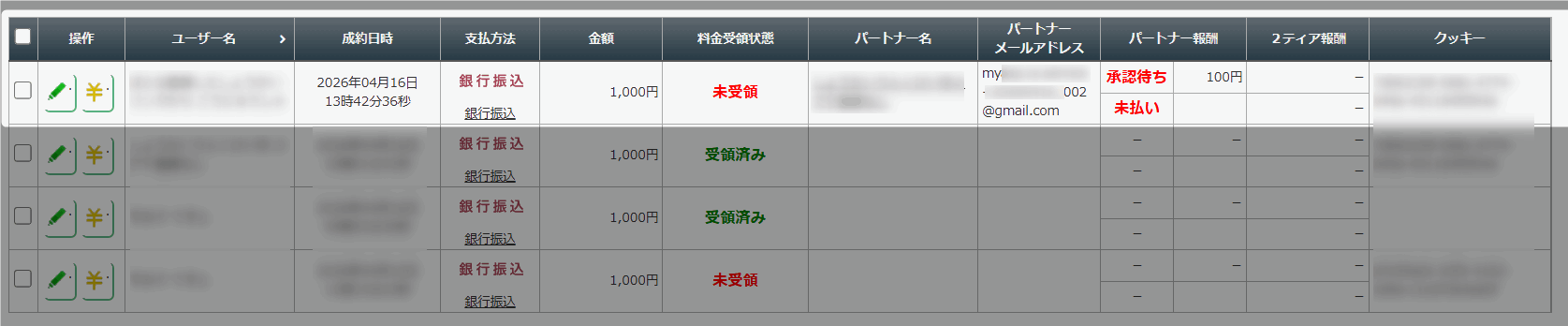 そのため、売上レポートなどでは通常の「パートナーなし」と同様の扱いになり、パートナー情報や報酬情報は紐付きません。したがって、匿名紹介だったかどうかを区別して確認することはできません。