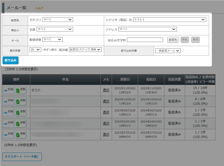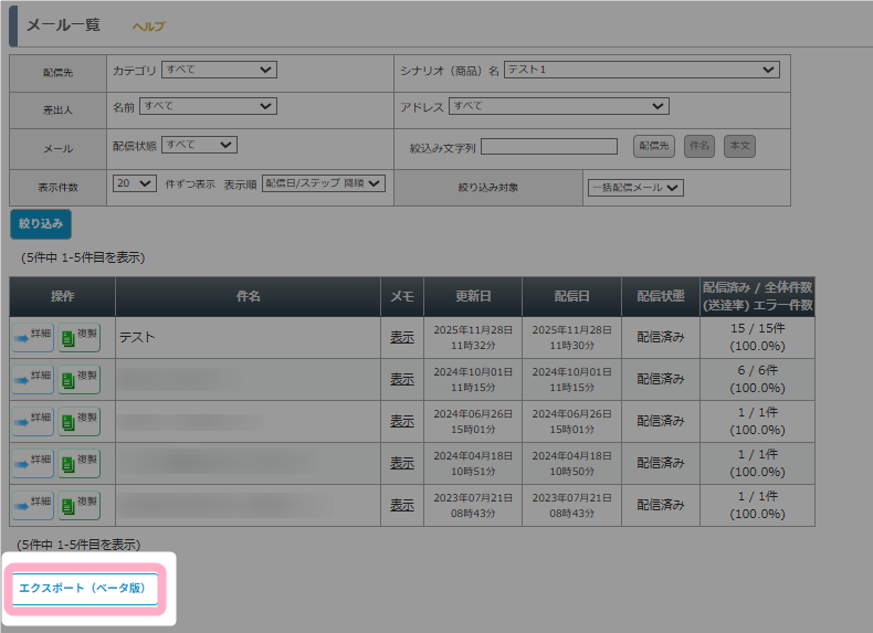 1. 「エクスポート機能」を利用して一括配信メールのデータを出力する