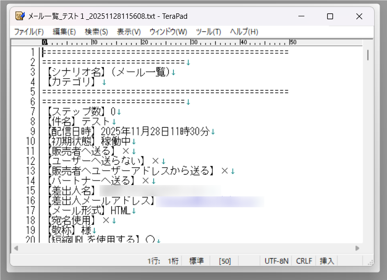 インポートするファイル「一括配信メールをエクスポートする」で出力したTXTファイル