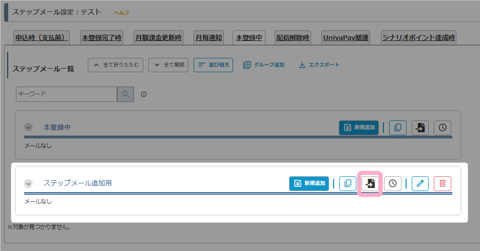 必要に応じて、「ステップメール追加用」グループは「」ボタンから削除してください。