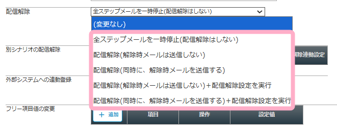 配信解除をしたい場合は、「配信解除」にて以下のいずれかを選択してください。