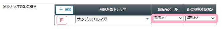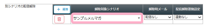別のシナリオの配信解除を設定したい場合は、「解除対象シナリオ」に配信を解除させたいシナリオを選択してください。